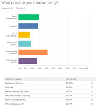 Two-thirds of you said that increasing your game knowledge and getting paid to umpire would encourage you to pick up a whilste.