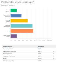 You told us umpires should be fed, watered (bought drinks), given regular recognition, and given mentoring support - we agree!